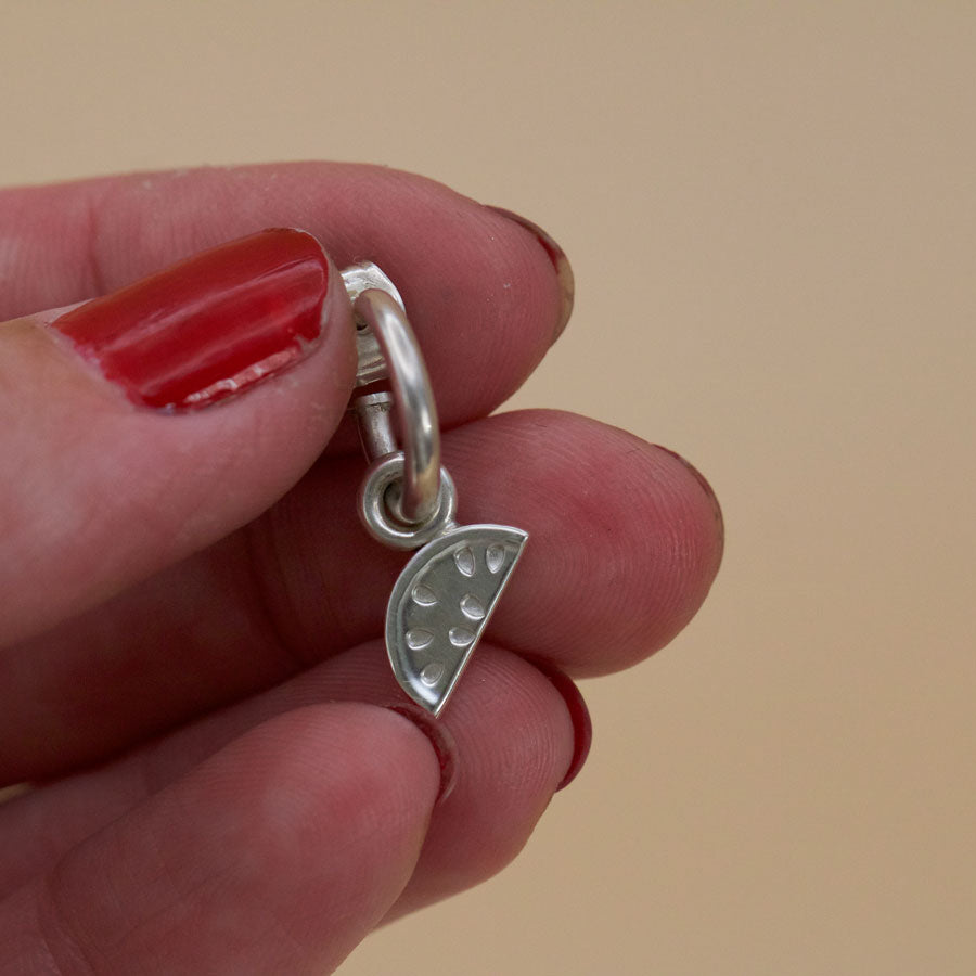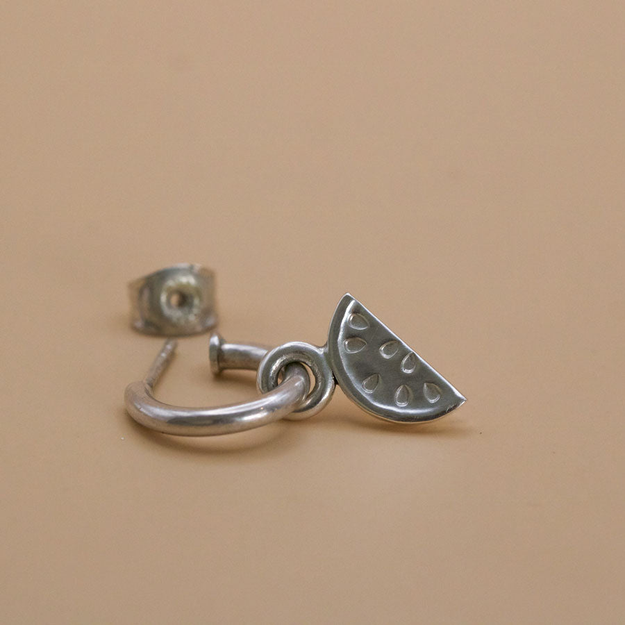 Liten vattenmelon, handgjord i silver att hänga i öronring. Notera att ringar köps separat!