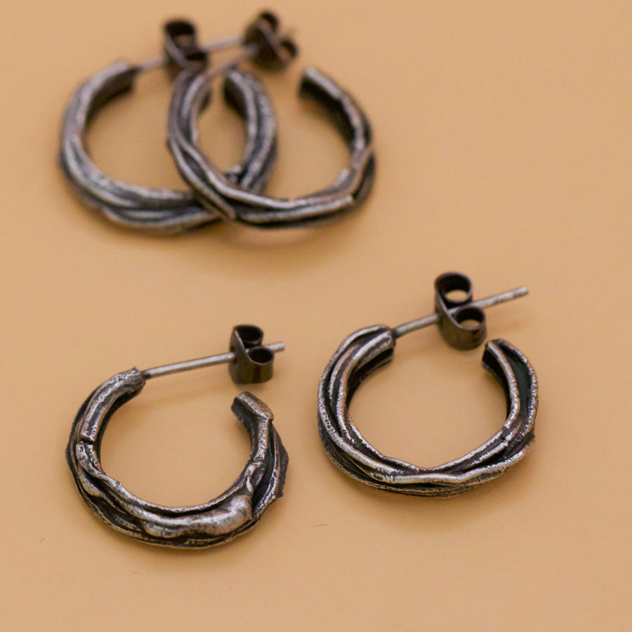 En mindre variant av fusion-örhängen. Oxiderat silver.